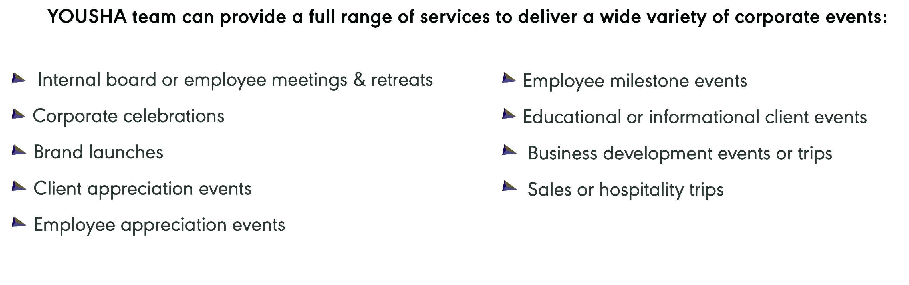 "YOUSHA is an incredibly talented, professional and industry leading event management company.“